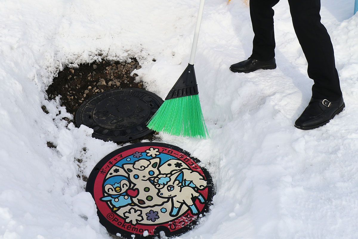 ที่จังหวัดฮอกไกโดเอง “Poké Lids” ก็โดดเด่นเช่นกัน อย่างเช่น ในเมืองปิปปุ ที่ขึ้นชื่อในเรื่อง “เมืองแห่งสกีและสตรอว์เบอรี” และ “เมืองที่มองเห็นภูเขาหิมะใหญ่ได้สวยงามที่สุดในโลก” อีกทั้งยังเป็นแหล่งกำเนิดของ “ข้าวพันธุ์ยูเมะพิริกะ” ซึ่งเป็นข้าวคุณภาพชั้นเลิศของฮอกไกโด ก็มี “Poké Lids” ติดตั้งอยู่ ว่ากันว่าชาวเมืองที่นี่ทุกคนต่างเอาใจใส่ฝานี้เป็นอย่างดี บ้างก็มีการตั้งเต้นท์ไว้เพื่อไม่ให้ฝาท่อน่ารักนี้ถูกซ่อนใต้หิมะ บ้างก็ติดตั้งป้ายเขียนบอกว่า “บางทีฝานี้จะถูกฝังอยู่ใต้หิมะ ให้ลองนำพลั่วกับไม้กวาดมาค่อย ๆ เกลี่ยหาดูนะ!” ได้ยินมาว่า ด้วยเหตุนี้ฝาท่อนี้จึงกลายเป็นกระแสในโซเชียลว่าเป็นฝาปิดท่อที่ “ได้รับการทะนุถนอมมากที่สุดในญี่ปุ่น” และทำให้มีผู้คนจำนวนมากไปเยี่ยมชมเพื่อให้เห็นด้วยตาของตัวเอง