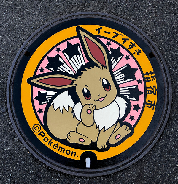 เมื่อวันที่ 20 ธันวาคม ค.ศ. 2018 ได้มีพิธีเปิดตัวฝาท่อลายโปเกมอนขึ้นที่เมืองอิบุสึกิ จังหวัดคาโกชิมะ “Poké Lids” ฝาท่อลายโปเกมอนนี้เป็นสิ่งที่เราได้มอบให้กับเทศบาลเมืองต่าง ๆ ในประเทศญี่ปุ่นโดยมีวัตถุประสงค์เพื่อให้โปเกมอนได้เป็นสื่อในการเผยแพร่เสน่ห์ของแต่ละท้องถิ่น และฝาท่อแผ่นแรกที่ควรค่าแก่การระลึกถึงได้ติดตั้งเป็นที่เรียบร้อยแล้ว ณ หน้าสถานีรถไฟอิบุสึกิ ภาพวาดของโปเกมอนบนฝาปิดท่อระบายน้ำแผ่นนี้คือ “อีวุย” และมีการติดตัง Poké Lids ลายโปเกมอนที่วิวัฒนาการจากอีวุยนี้รวมทั้งหมด 9 แผ่นในเมืองนี้ด้วย เสียงอ่านของคำว่า “Ibusuki (อิบุสึกิ)” กับ “Eevee suki (ชอบอีวุย)”... ดูคล้องจองกันดีใช่ไหมล่ะ ไอเดียนี้ได้มาจากข้อเสนอจากทางเทศบาลเมืองที่ว่า “อยากมอบหมายตำแหน่งทูตด้านการกีฬาและแลกเปลี่ยนวัฒนธรรมให้กับอีวุย” จึงได้ขยายผลมาสู่การติดตั้งฝาปิดท่อระบายน้ำนี้ซึ่งเป็นกิจกรรมที่ยังไม่เคยมีมาก่อน